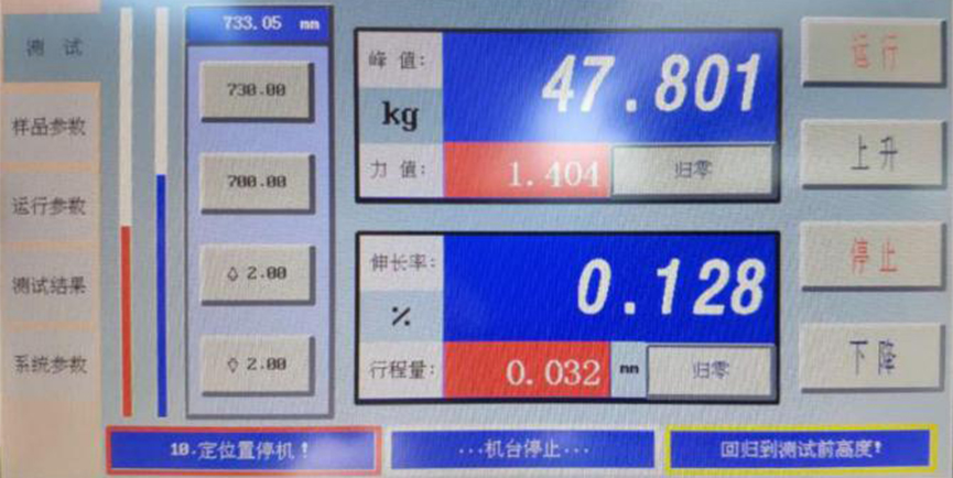 F.自動回歸:自動識別試驗最大力,活動橫梁自動高速返回初始位置;